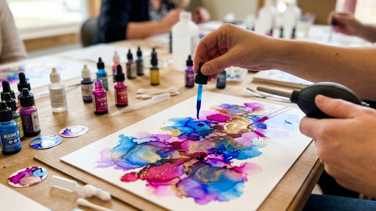 اكتشف الطبيعة الانسيابية والتعبيرية للحبر في هذه التجربة الفنية التفاعلية. خلال هذه الجلسة التي تستمر ساعة واحدة، سيستكشف المشاركون كيفية حركة الألوان وامتزاجها على السطح لتشكيل أنماط عفوية وغير متوقعة.