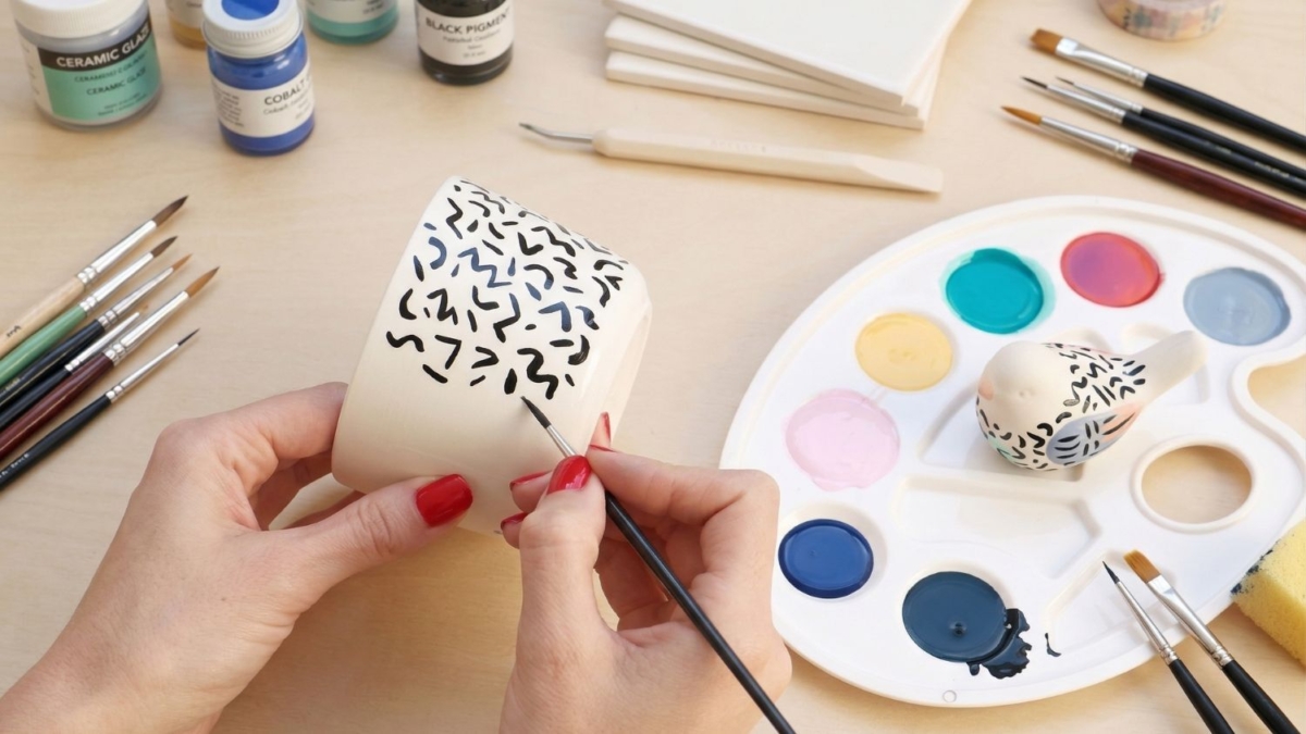 نشاط إبداعي هادئ وممتع، يتيح لك تلوين الخزف الجاهز الاستمتاع بعملية التزيين الفني، مع ابتكار قطعة فريدة وعملية أو زخرفية يمكنك الاحتفاظ بها وأخذها معك إلى المنزل.
