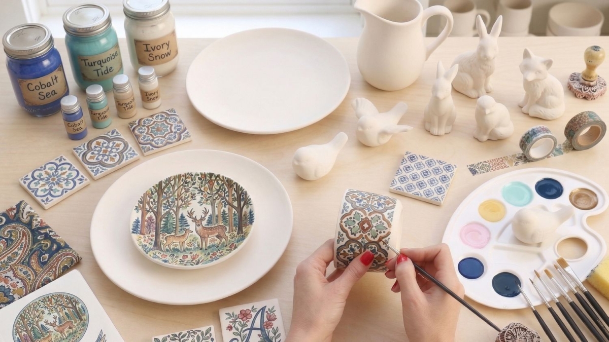 أطلق العنان لإبداعك من خلال تلوين القطع الخزفية الجاهزة للحرق الأولي (Bisque) وتحويلها إلى أعمال فنية شخصية مميزة.