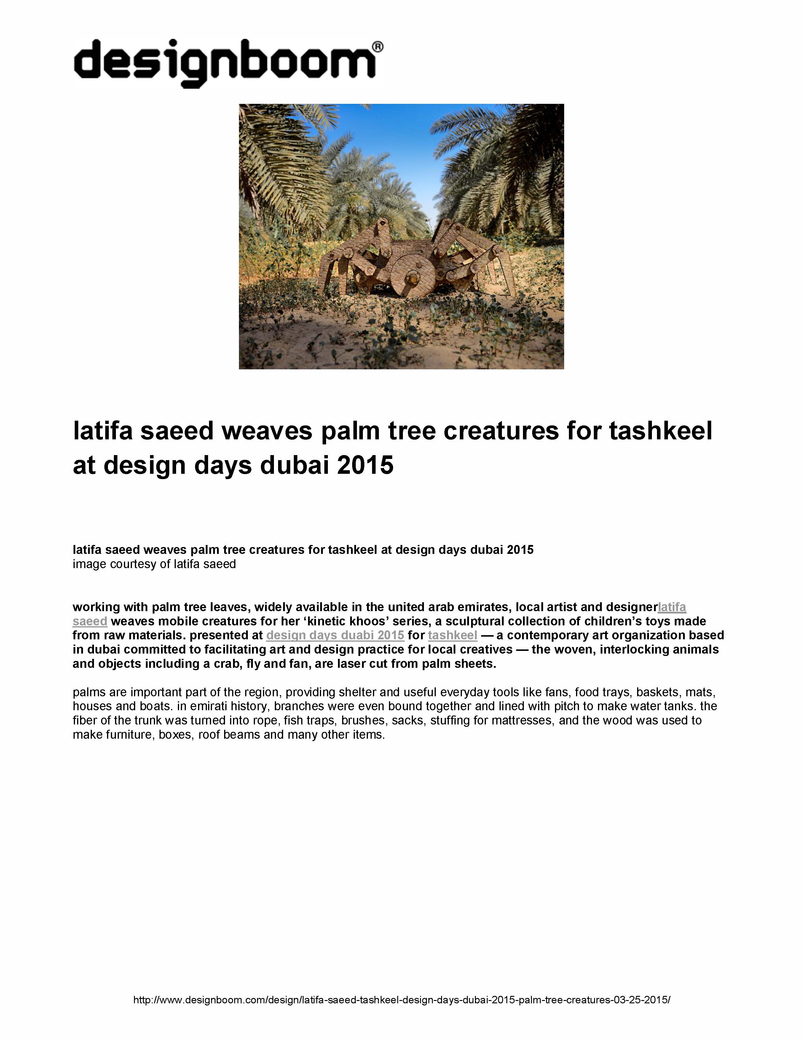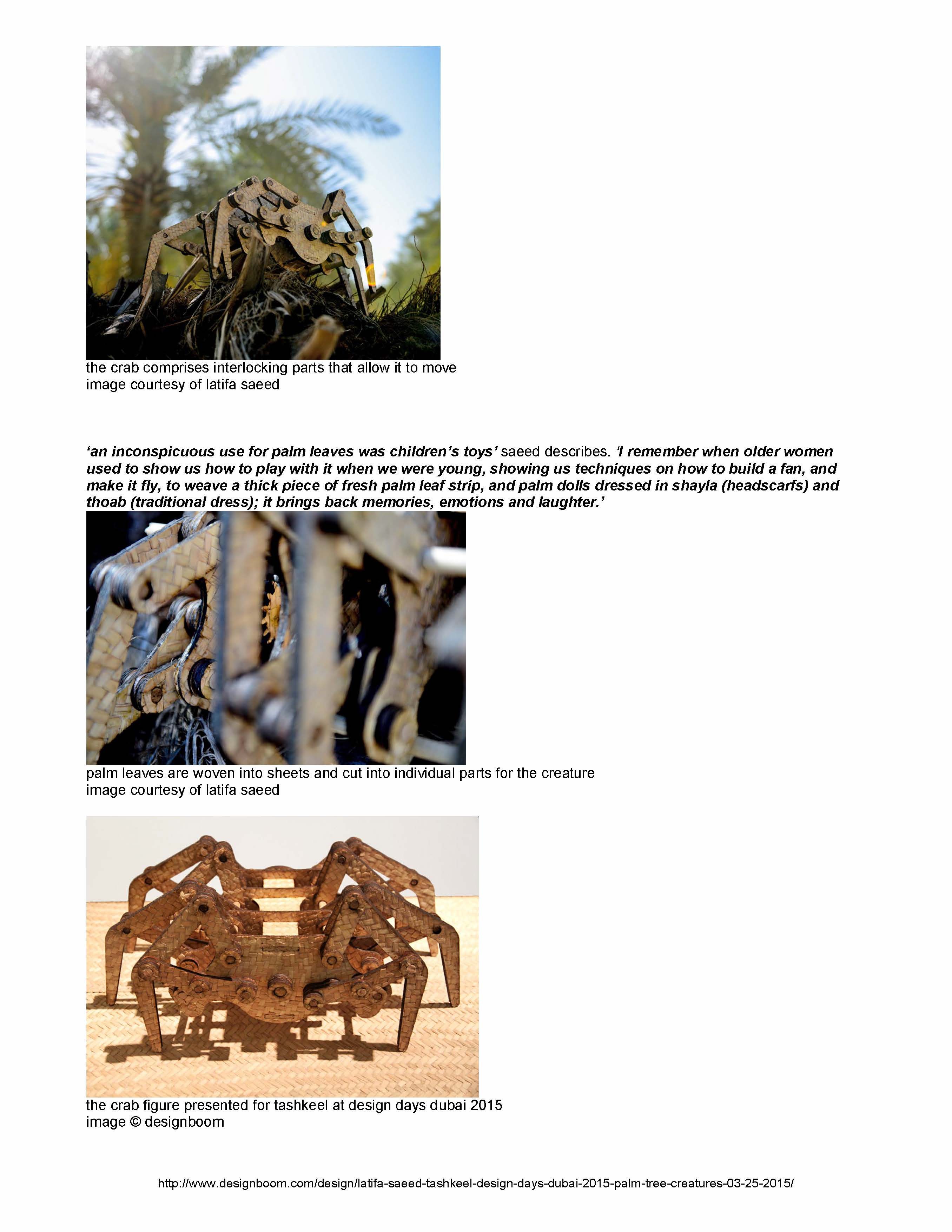 Latifa Saeed weaves palm tree creatures for Tashkeel at Design Days Dubai 2015