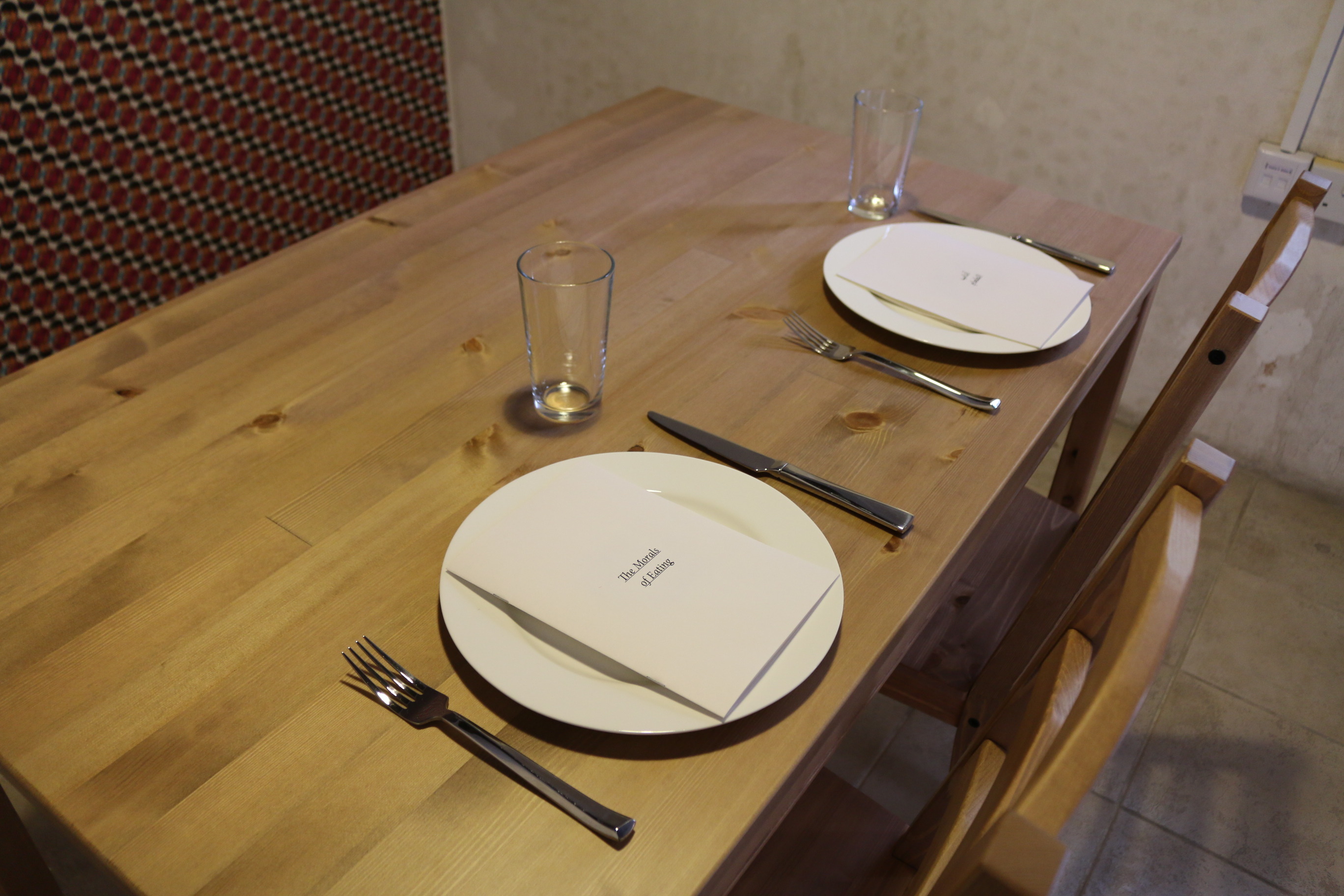 Maryam Al Qassimi has been exploring material and imagery from a diverse array of sources she found in the UAE – packages, shop signs and educational signage. Her fascination with repetition of certain cultural iconography and with portrayal of ‘vernacular’ and ‘culture’, motivated her to document and collect these materials over several years. Various inconsistencies in aesthetics and design as well as language errors she kept noticing in these images, moved the artist towards a long-term research project. Presented in the Open Studios, The Morals of Eating is part of this larger project. Through an ensemble of wallpaper and objects, Maryam investigates instructional narratives on behavior and etiquette in pedagogical tools, which covered the walls of her classroom as a child. The artist’s study of behavioral representation focuses on the act of eating during A.i.R Dubai.