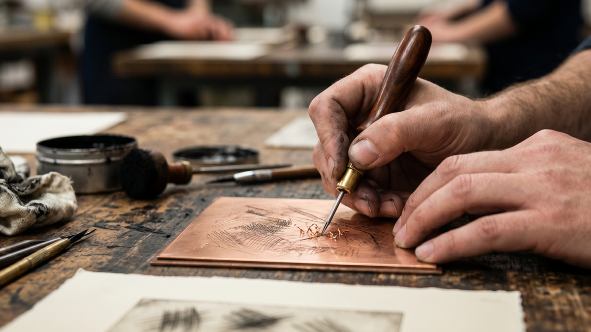In this short, hands-on activation, participants will explore the basics of drypoint etching by scratching their designs onto a plate surface. Using simple tools, they will create lines and textures that will hold ink and transfer onto paper.