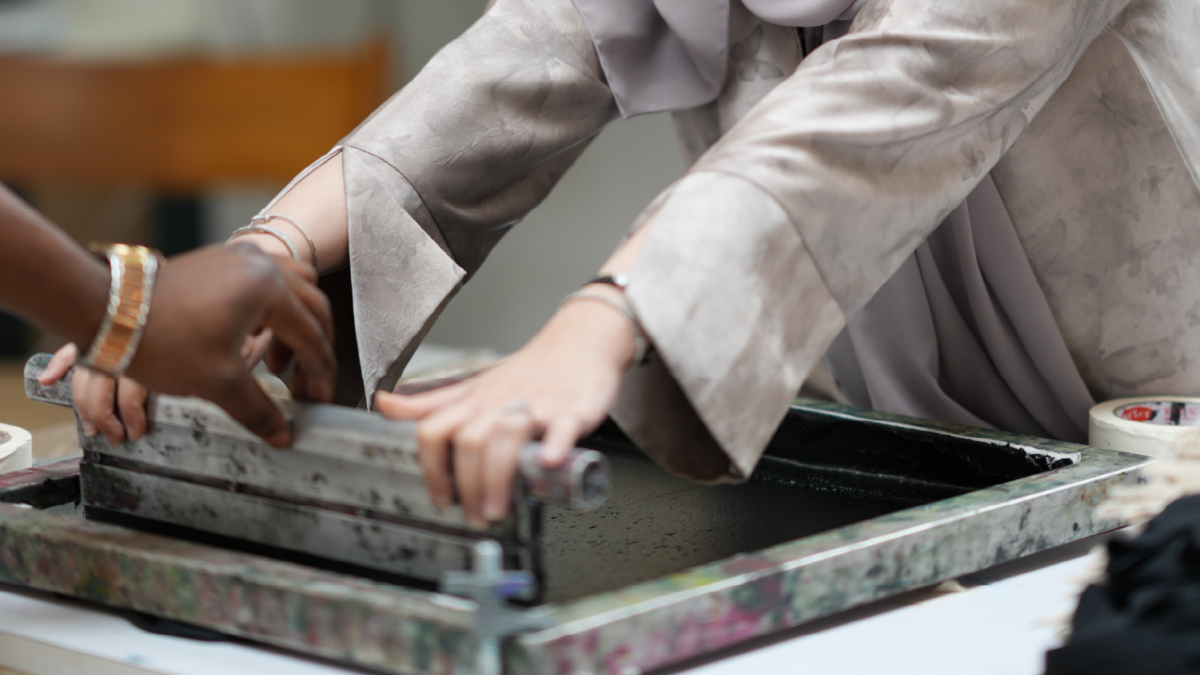 In this short, hands-on activation, participants will explore the basics of silk screen printing by creating bold prints on paper or fabric. Using pre-prepared screens, they will learn how to apply ink and transfer simple designs through a guided, step-by-step process.