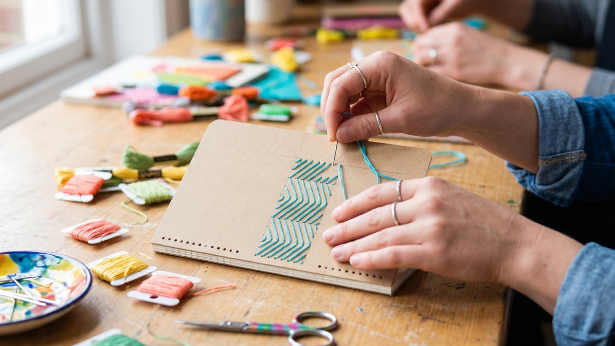 Through guided steps, they will experiment with pattern, repetition, and color using thread to highlight selected elements of the design. A relaxing and creative experience, perfect for trying something new and crafting a notebook that can be used and enjoyed every day.