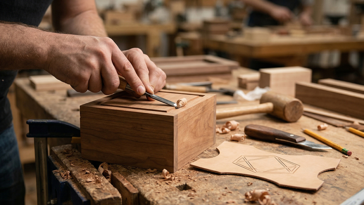 This introductory workshop invites participants to experience the art of woodworking combined with leather craftsmanship by creating their own handcrafted wooden box featuring a decorative leather inlay.